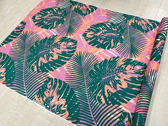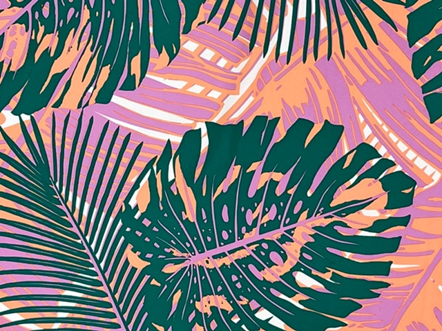 大きなモンステラやヤシやバナナの葉が美しく描かれています。