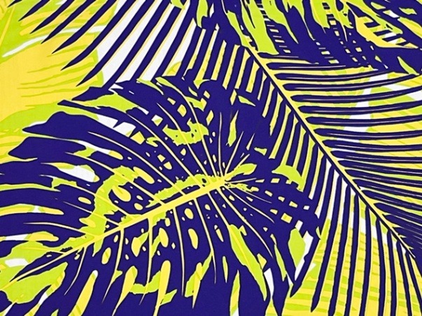 大きなモンステラやヤシやバナナの葉が美しく描かれています。