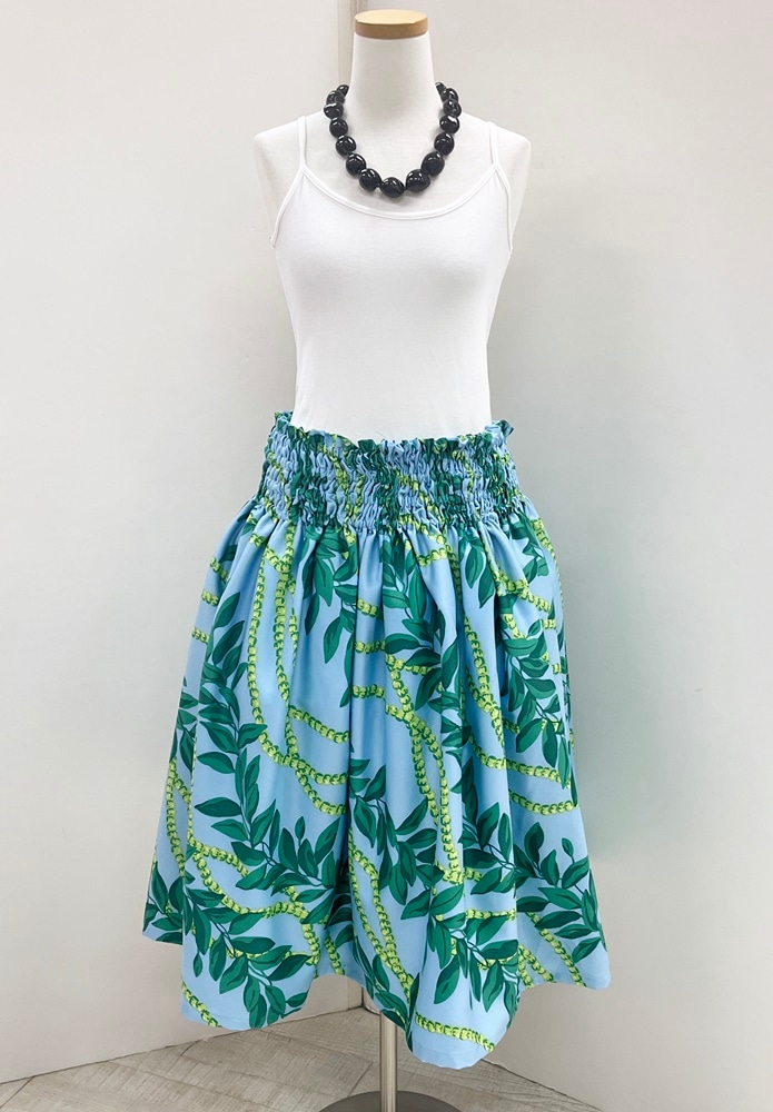 オリジナルパウスカート3.6m70cm丈 He nani mokihana ヘナニモキハナ(キャンディーブルー) ポリエステル100%