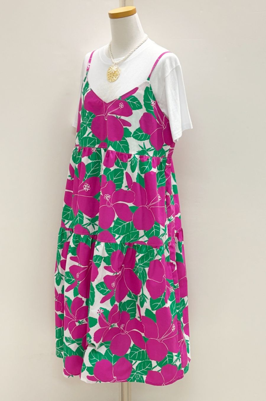メネフネオリジナルワンピースOP-41 プリティーレッドハイビスカス[ホットピンク]